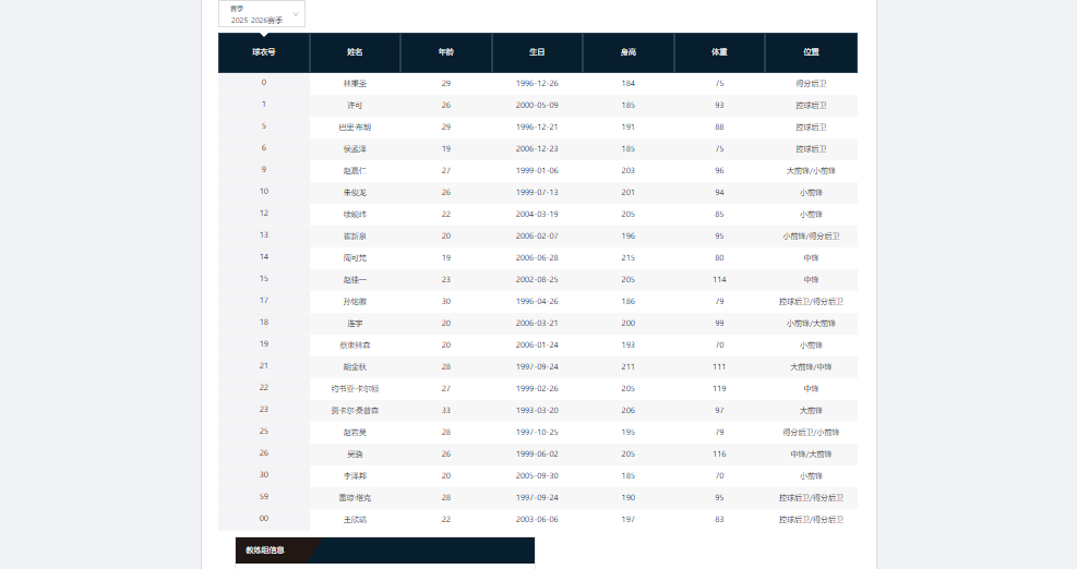 广厦男篮本赛季17位本土球员平均年龄约为23.82岁